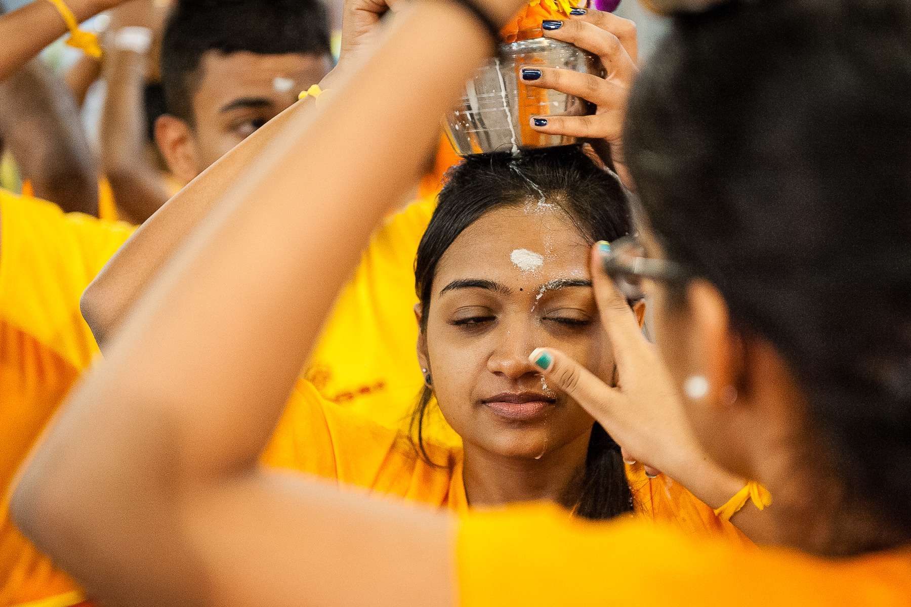 Thaipusam ist ein hinduistisches Fest, das von Tamilen am Vollmond des tamilischen Monats Thai gefeiert wird. Der Name „Pusam“ bezieht sich auf einen Stern, der während des Festes seinen höchsten Punkt erreicht. Thaipusam wird zu Ehren von Lord Subramaniam, auch bekannt als Lord Murugan, gefeiert. Lord Subramaniam ist ein Gott, der für Tugend, Jugendlichkeit und Kraft steht und als Vernichter des Bösen gilt. Die Gläubigen tragen Milchtöpfe, manche durchbohren sich die Zunge und Wangen. Einige Männer tragen Kavadis auf ihren Schultern, die bis zu 50 kg wiegen können. Ihre Familienangehörigen unterstützen sie dabei.